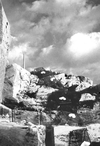 Bevor Offroader und SUV den täglichen Transport der Steinbrucharbeiter vom Tal hoch in die Marmorbrüche übernahmen, wurde in einfachen Schutzhütten aus Bruchstein, in Nachbarschaft zum Arbeitsplatz, dem Marmorsteinbruch, übernachtet. Fußläufig waren die stundenlangen Auf- und Abstiege in einem Arbeitszyklus nicht zu bewältigen.