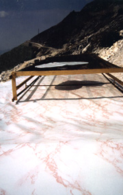 Marmorne Herzen auf jeder Pritsche erinnern an die ungezählten Generationen von Cavatori, die hier ihrer Arbeit nachgingen
